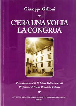 Lo ha firmato Giuseppe Galloni, segretario dellIdsc, su sollecitazione del presidente mons. Benedetto Falcetti. Nel libro Cera una volta la congrua, opere 8xmille e Offerte sono in evidenza. «Consentire ad un ministro di culto di vivere dignitosamente, affidato alle offerte dei fedeli» ha scritto nella prefazione il vescovo di Rieti, monsignor Delio Lucarelli «vuol dire dare il primato allo Spirito, perché il sacerdote si impegnerà a tempo pieno ad offrire alle persone che incontra il volto di una Chiesa che pensa anzitutto a curare le anime». Una storia da conoscere da vicino. (Maria Severini)